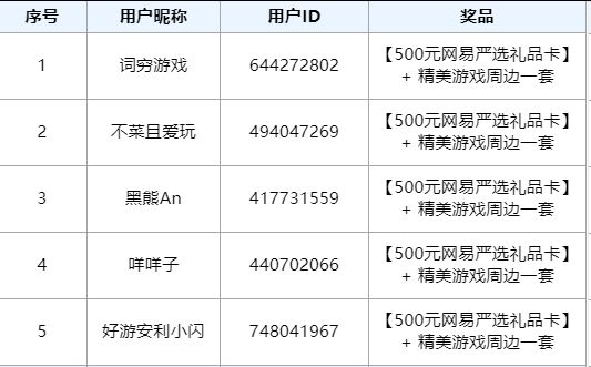 活动期间,根据单个【图文】稿件质量和数据维度综合考量,选出5位船长,奖励【500元网易严选礼品卡】+ 精美游戏周边一套。