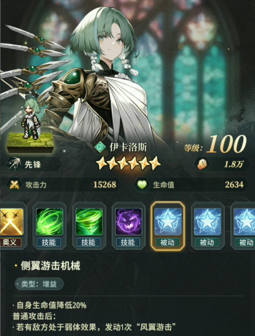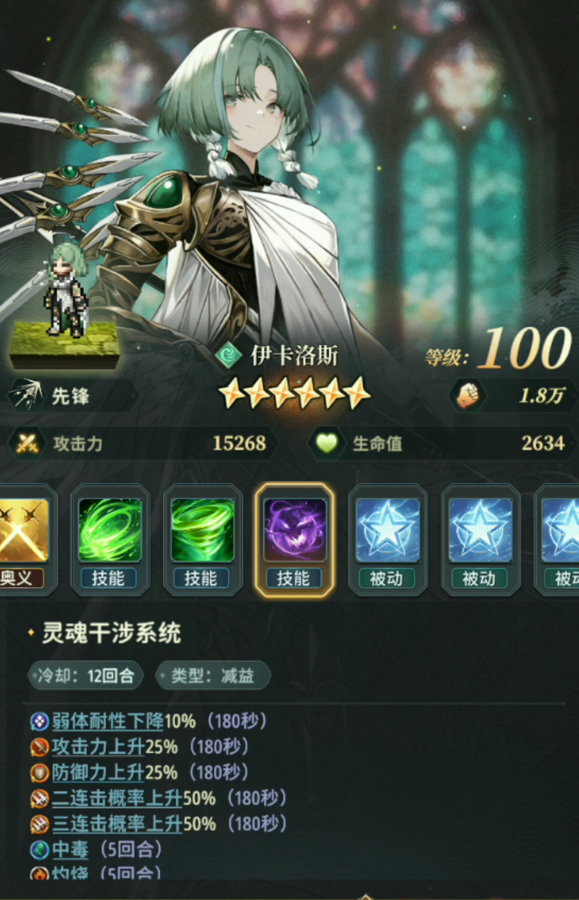 其次是风先机,1技能4次攻击,降防10%180秒,2技能10次0.6倍攻击,3技能如图,奥义减CD1回合。中规中矩的角色,有出色的多倍技伤,有不俗的弱体效果,被动触发1技能叠加弱体的同时打出多段伤害非常契合风系的体系,加上自己本身就是先锋能吃到武器的增伤。优先度:★★★★