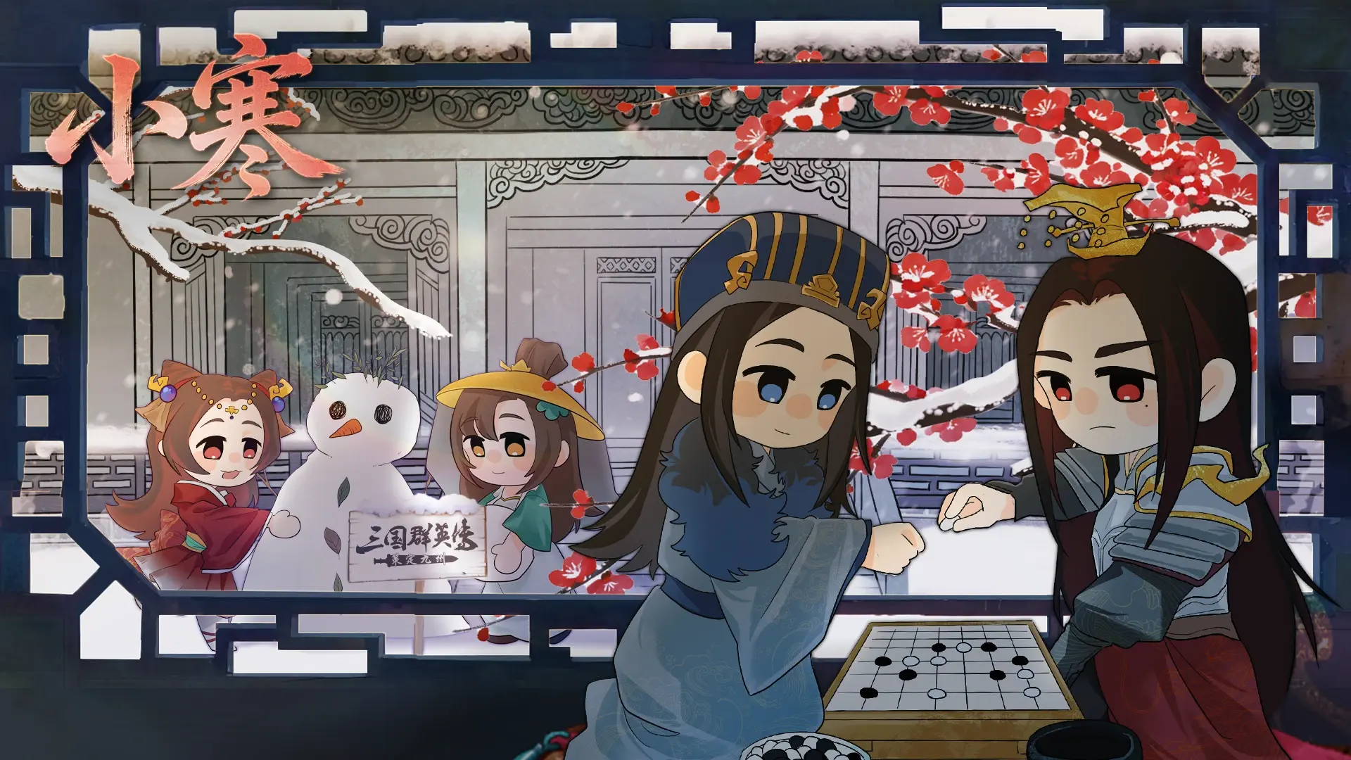 窗外,月英姐姐与小乔妹妹肩头落着细雪,正在堆雪人;窗内,诸葛亮与孙权正执子对弈。一扇雕花窗,隔开风雪与暖香,却隔不开同一份岁月静好。