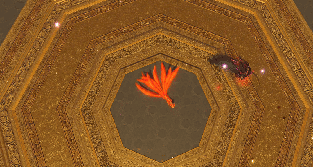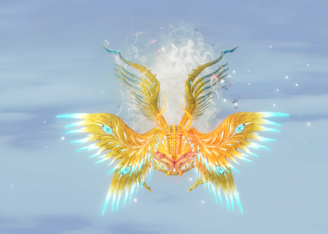 帝江兴致高涨,喷吐出火球开始使用触手进行花式抛球,随后将所有火球抛向天空似烟花般炸开,帝江攀升一段距离愉悦的舒展身形。