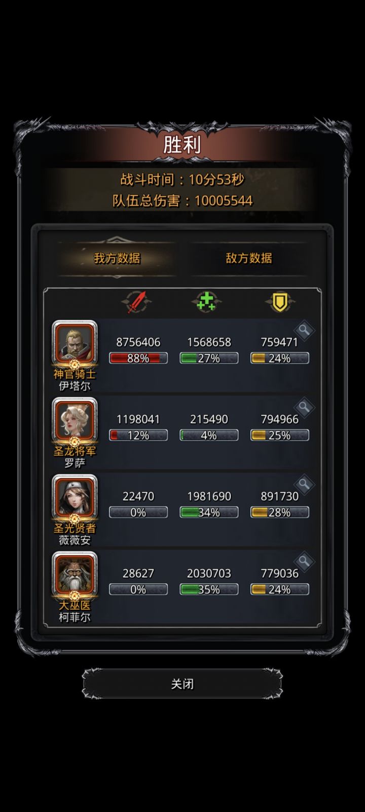 全门这阵容一次过,甚至只打了十分钟,不知道之前没有圣戒的时候得打多久,还没过全门的小伙伴可以参考一下,巫医60/85奶,祭祀始终奶,神官90自己始终奶队友,圣龙一直嘲讽反击,前面五分钟挂机,五分钟后神官99自己始终奶队友,巫医手动轮流奶祭祀和巫医