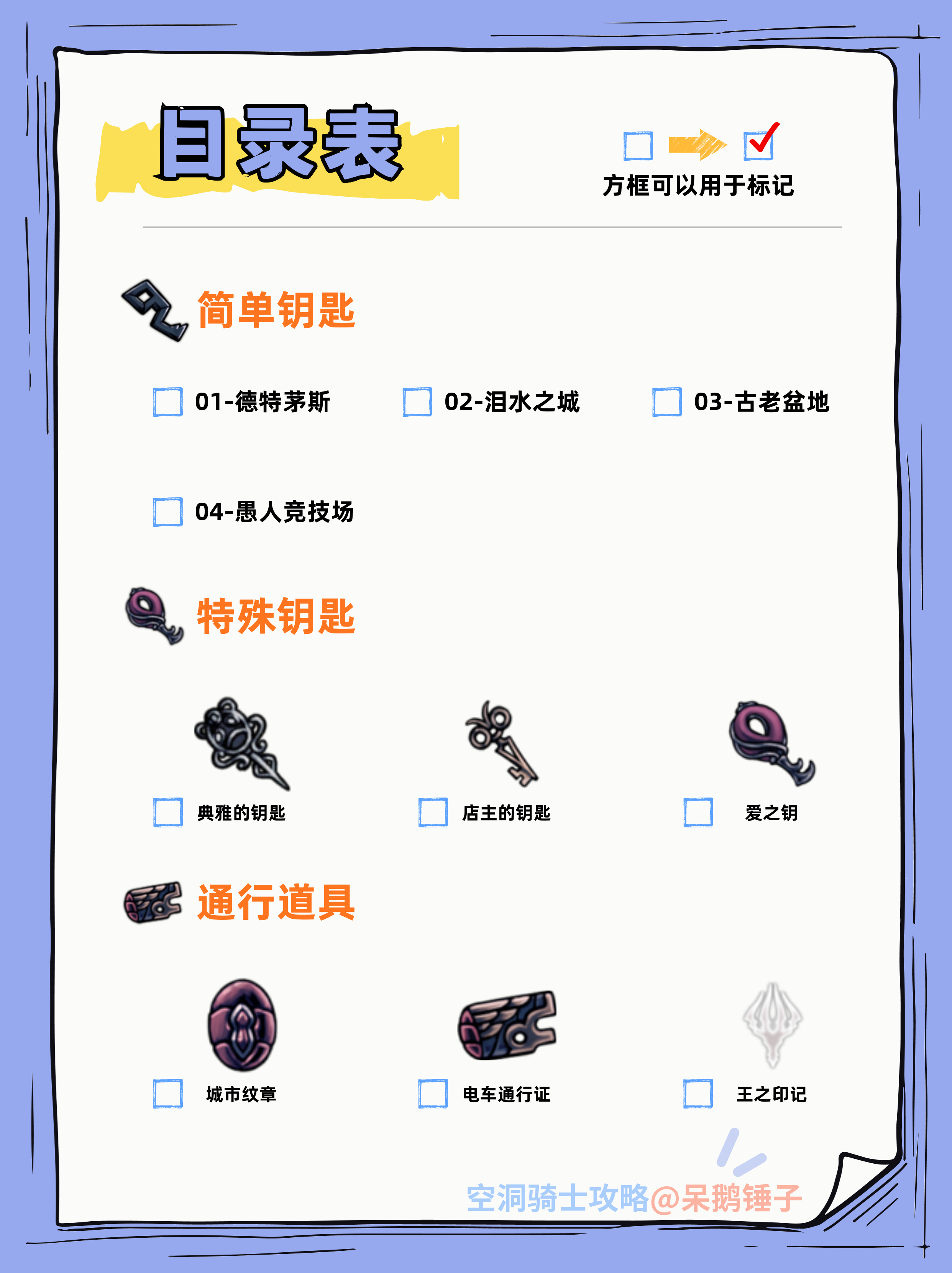【空洞骑士】4把简单钥匙、其他钥匙道具攻略