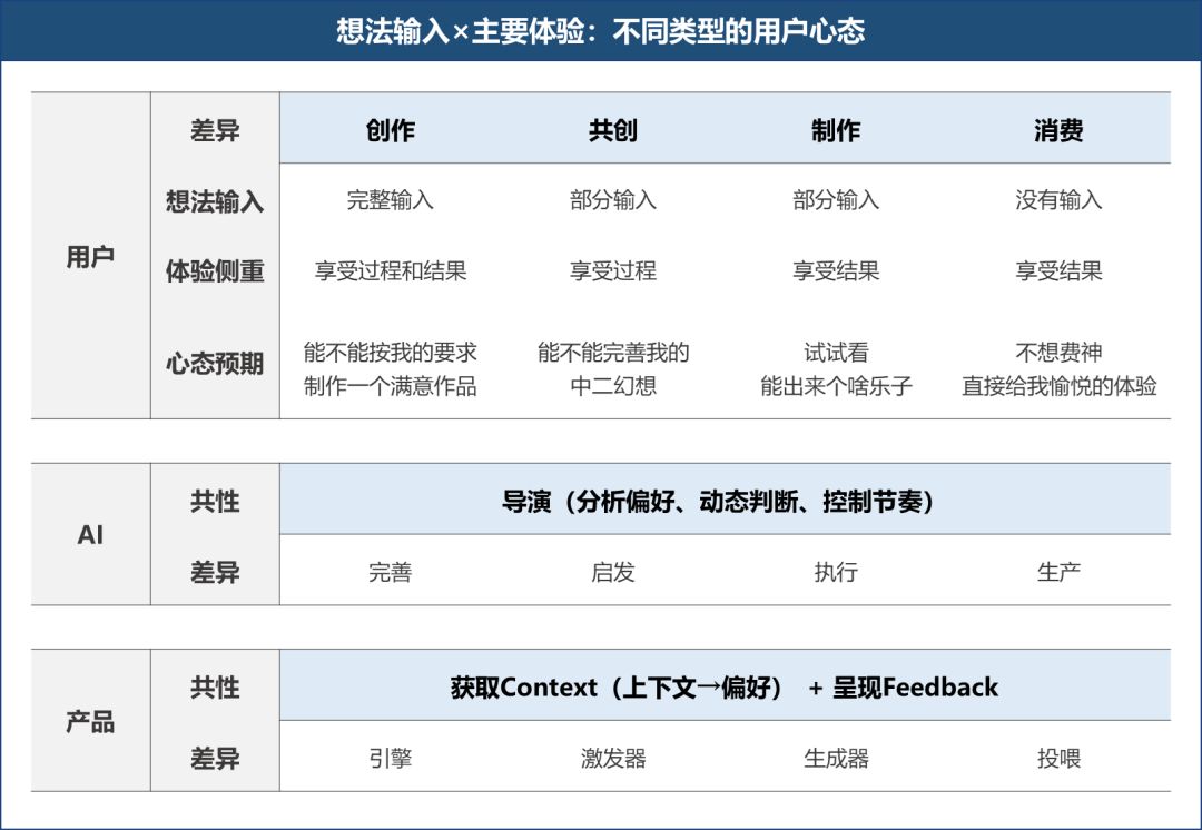 其一,产品体验源自于创作,能衔接消遣惊喜和共创心流的AI原生体验;