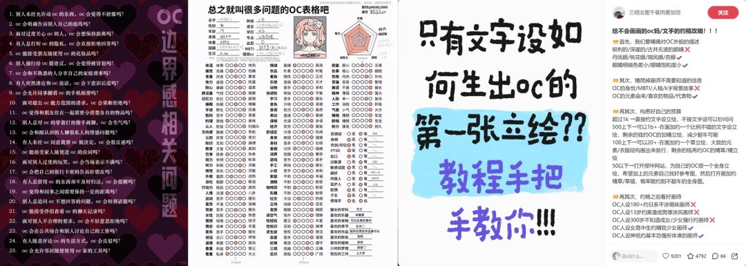 可见,受限于知识需求(想不到)、技术门槛(做不出)和婆罗门社区的排他性,对于绝大部分小白用户而言,虽有表达冲动和素材,但往往在捏角色时会碎片化、零散化,导致缺要素、理不顺,而在更重要的养角色时,又羞于文笔、美术和财力,很难让角色更好地多媒体化,并参与社交互动(譬如创作接力、OC×OC互动)。