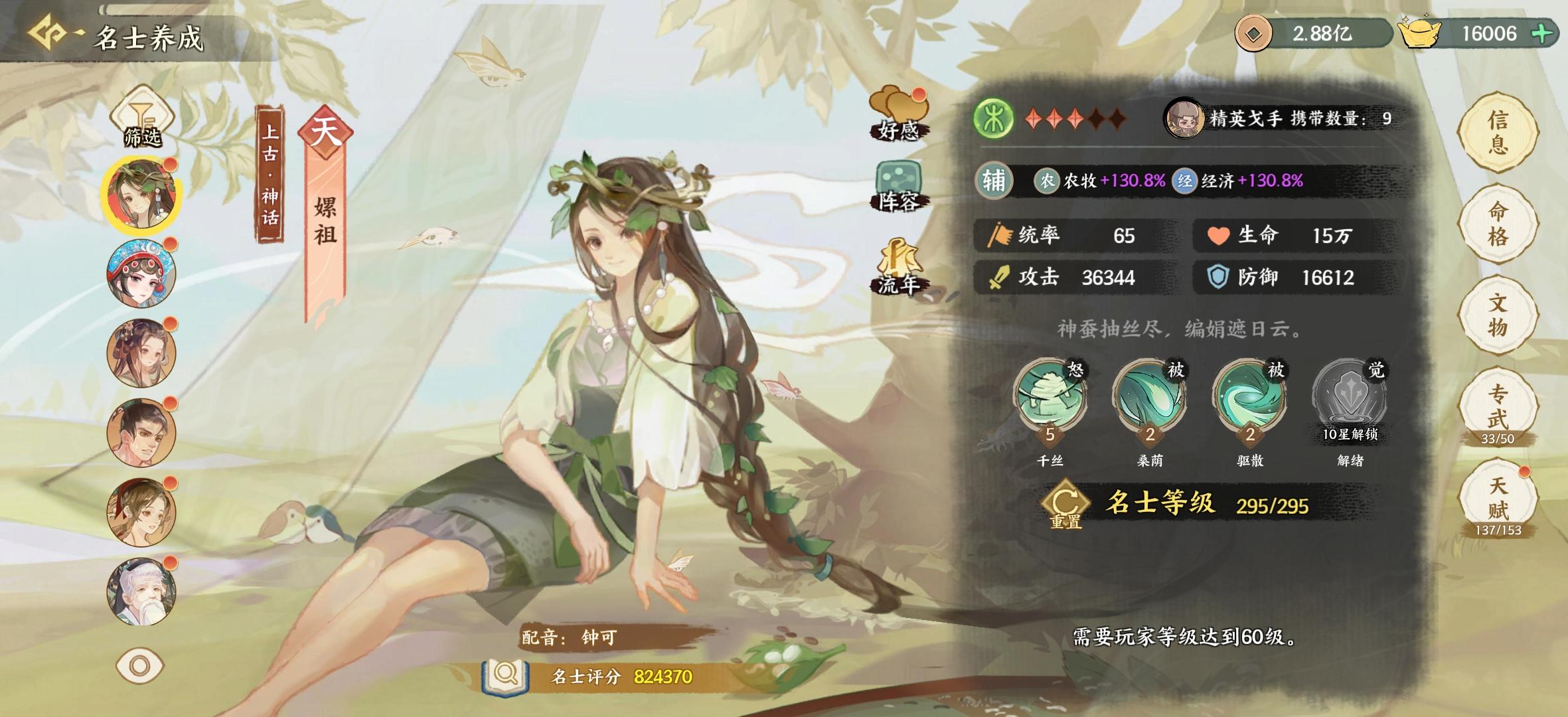嫘祖六七星后即可替换文成公主,形成嫦娥大禹西施二乔嫘祖配队。