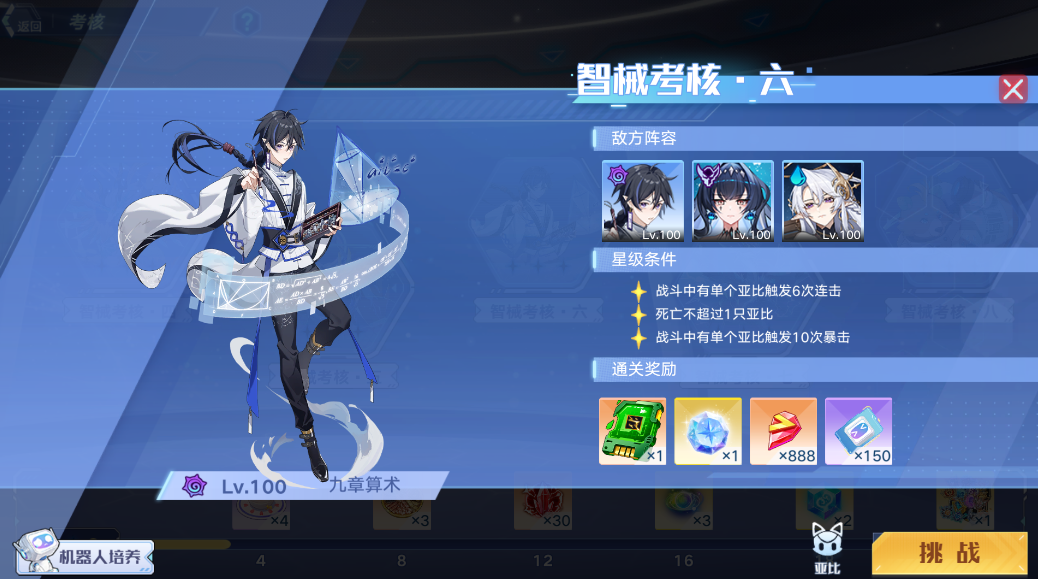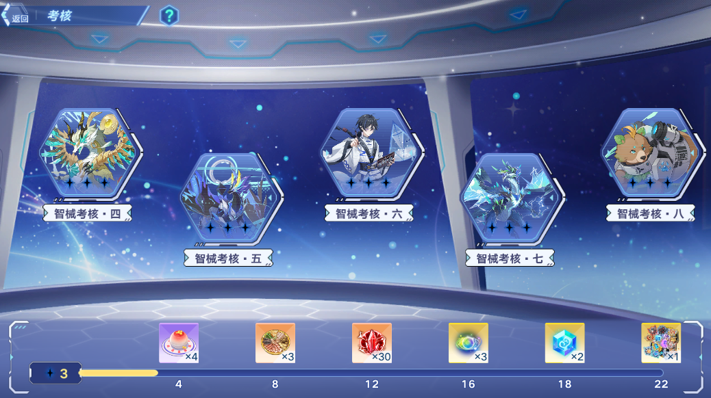 2.每个考核挑战都有3个星级条件需要达成,每次挑战胜利后会实时更新本次挑战达成的条件数并获得对应星星;
