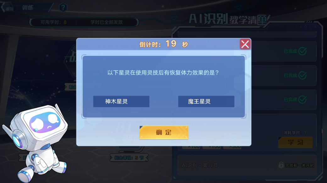 3.参与训练需要消耗学时,1月8日更新后小奥拉获得8个学时,小奥拉可使用学时自由分配训练的课程;