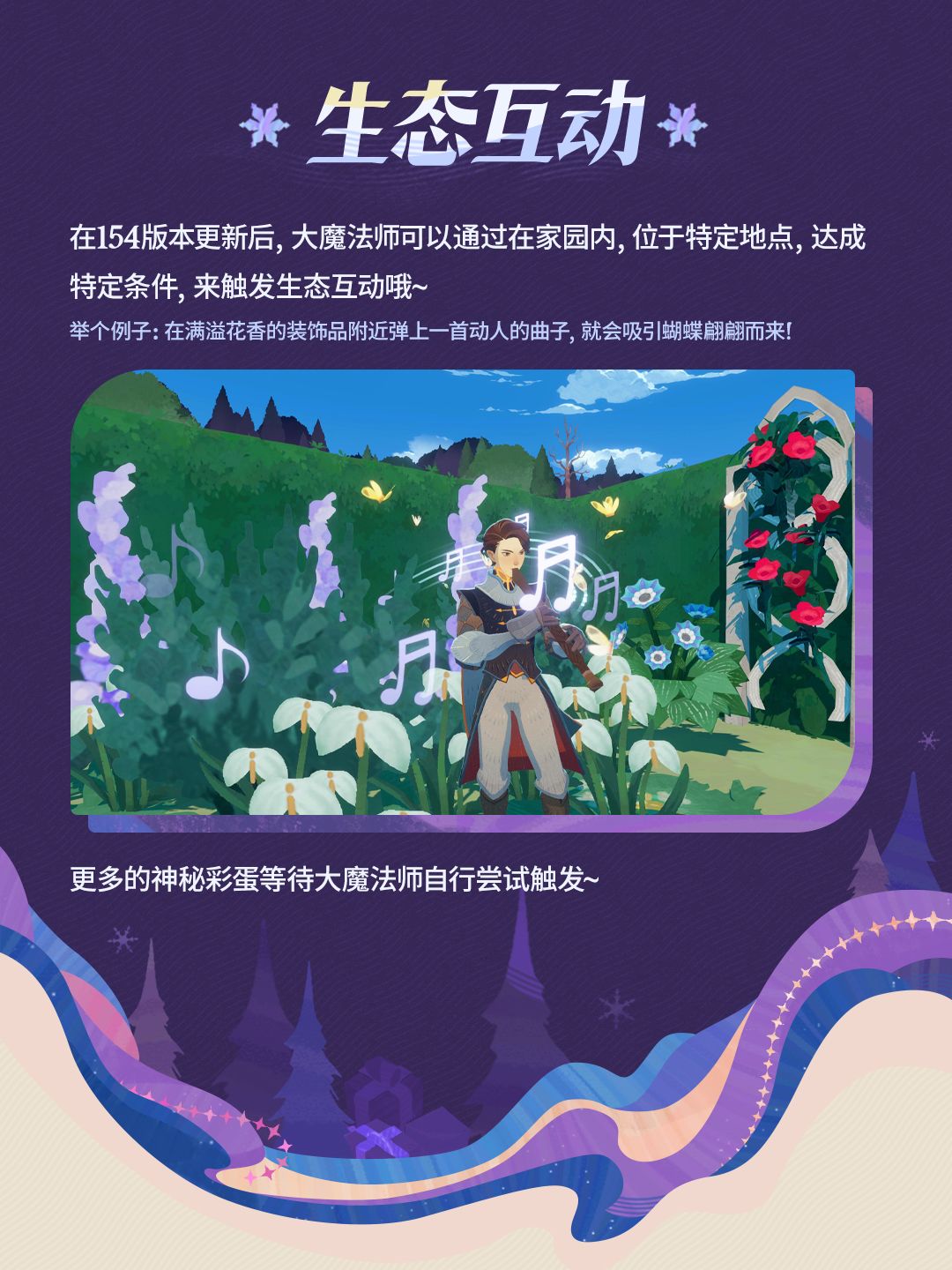1.5.4版本更新后,大魔法师可以通过在家园内,位于特定地点,达成特定条件,来触发生态互动哦!更多的神秘彩蛋也等待大魔法师自行发现!