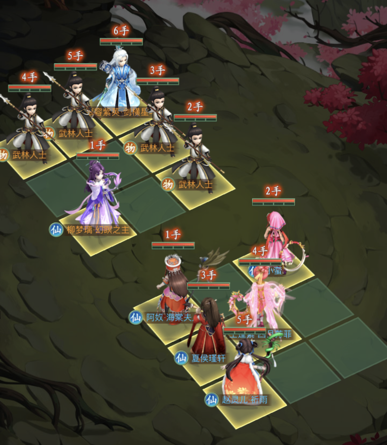 赵灵儿·祈雨放7号位,灵儿本阵容第二个群攻伙伴,绝技“风雪冰天”造成高额的群体伤害,同时造成当前精力3%的绝对伤害,被动“祈雨”进一步提高自身11.2%暴击率以及20%的仙术伤害,最高叠加2层,放在7号位确保自身状态达到最高值(精力高于55%吃满自身增益被动“灵风追击”进一步提高自身21%的仙术伤害)最大化对场上剩余武林人士造成伤害。