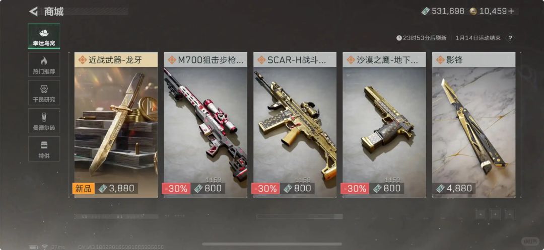 《三角洲行动》元旦特别活动“幸运鸟窝”已经来到了第六天,大家都刷到刀皮了吗?