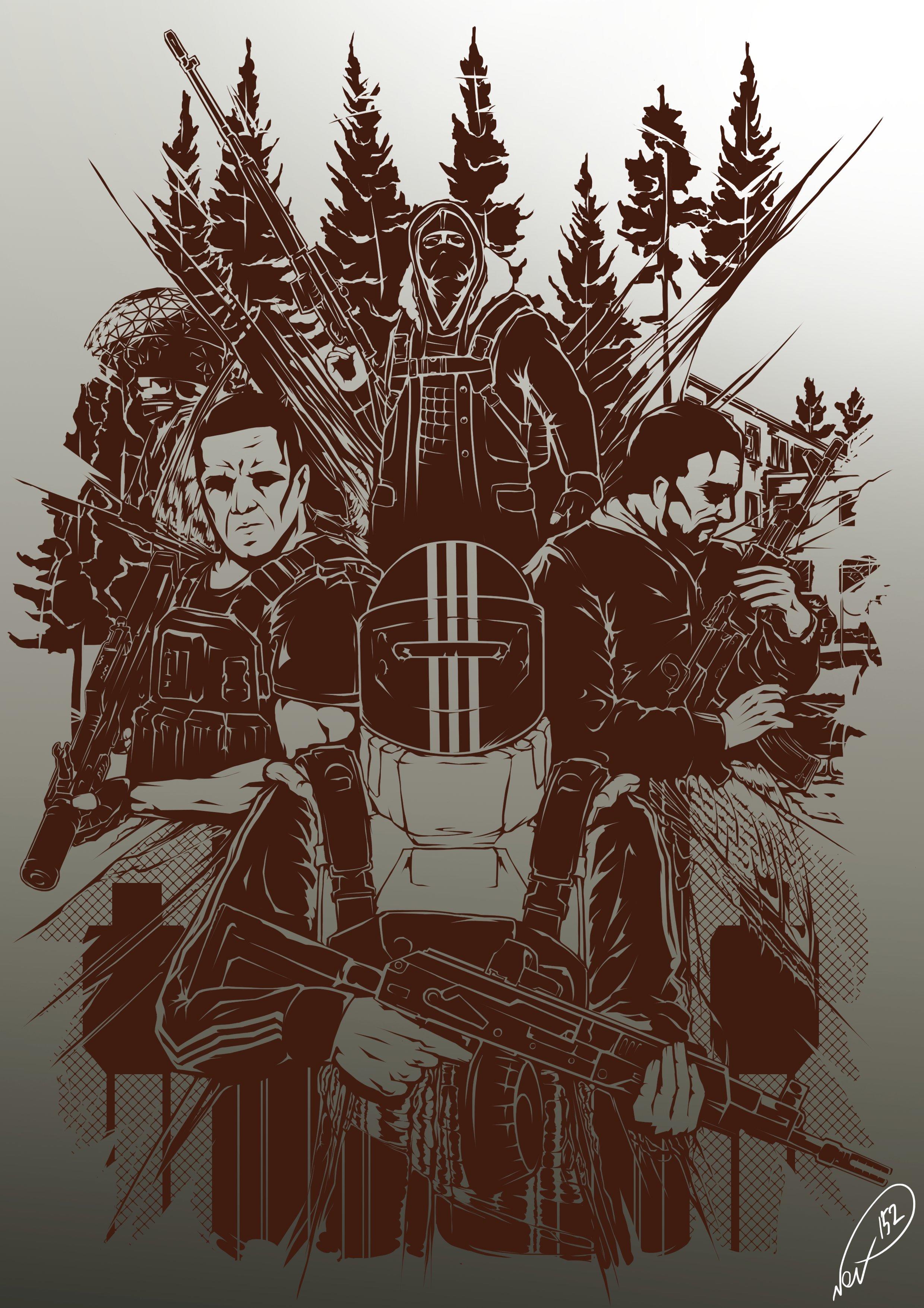 创作一件基于《逃离塔科夫》宇宙的艺术作品。作品必须由您亲手绘制完成,不得包含现实生活照片或游戏内截图;