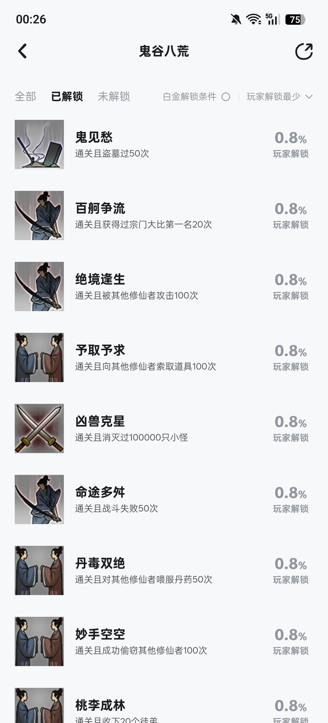 鬼见愁 : 完成进度参考个人生涯大事中的“挖宝次数”,本人是登仙后在琅琊阁sl风水书,将风水技艺拉满后,再将《寻风》《天魂鬼契》《九星连珠》学至满级,然后在地图上“五步一堪舆”,个人体验下来,堪舆到墓的概率与风水值无关,风水100的地方堪舆10次啥也没有,风水8的地方却一击即中,很玄学。