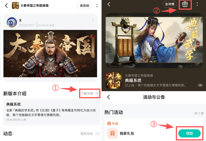 礼包内容:【招贤令*5】【求贤令*5】【声望令*5】兵【兵符•天龙*40】【杜康*10】领取引导