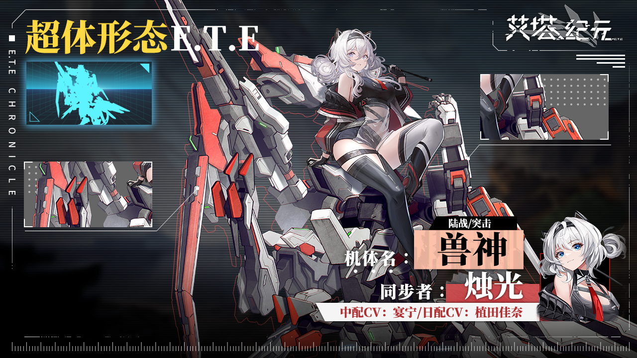 以「半人马Ⅱ」机体为基础进行核心重构的艾塔超体形态。鉴于原机体构造的特殊性,「兽神」最大限度地保留了四足式机甲的特点,对装甲、动力和武器装备进行了全面升级。如果说「半人马Ⅱ」如同帮助古雷恩征战四方而建国的骠骑一样骁勇,那「兽神」则就是在古雷恩帝国在最为强盛的年代、以巨大的铁蹄征服了整片大陆的重装战马,闪耀着无可阻挡的气势与光辉。