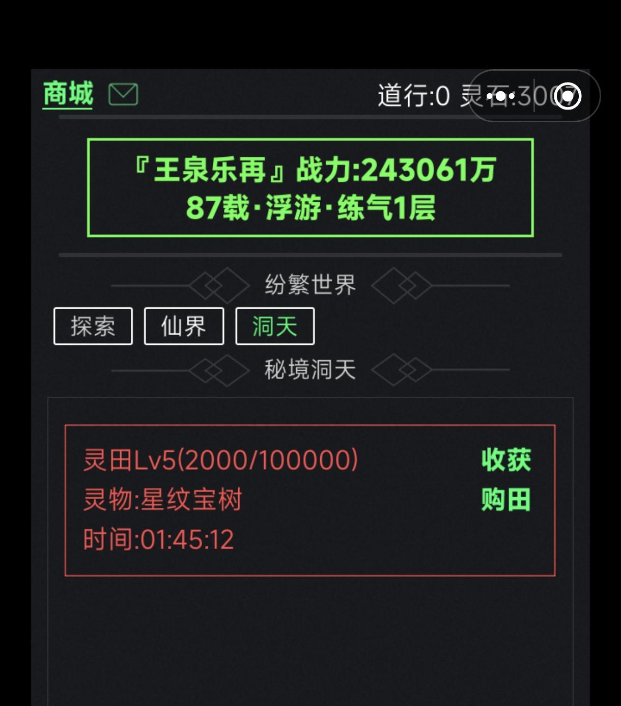 1级田升5级田需要近6天,可获得纯利30.81万灵石,最多可购买(初始灵田等级-1)块灵田