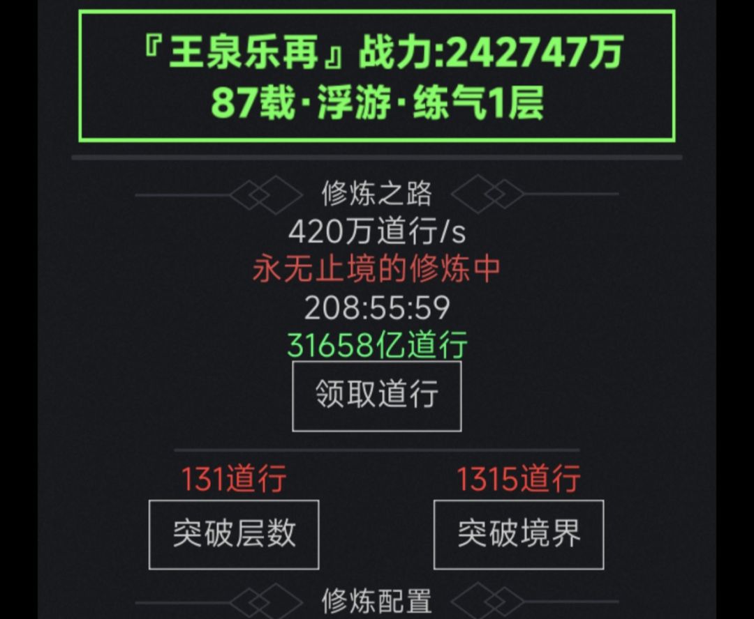 在游玩时,有些人会发现行动力过了几个小时都没回复的情况,行动力恢复方法为领取道行时。会恢复领取道行时间整小时的次数,如上图可领取208点行动力,不足一小时的不会恢复行动力,尽量在整数小时左右领取