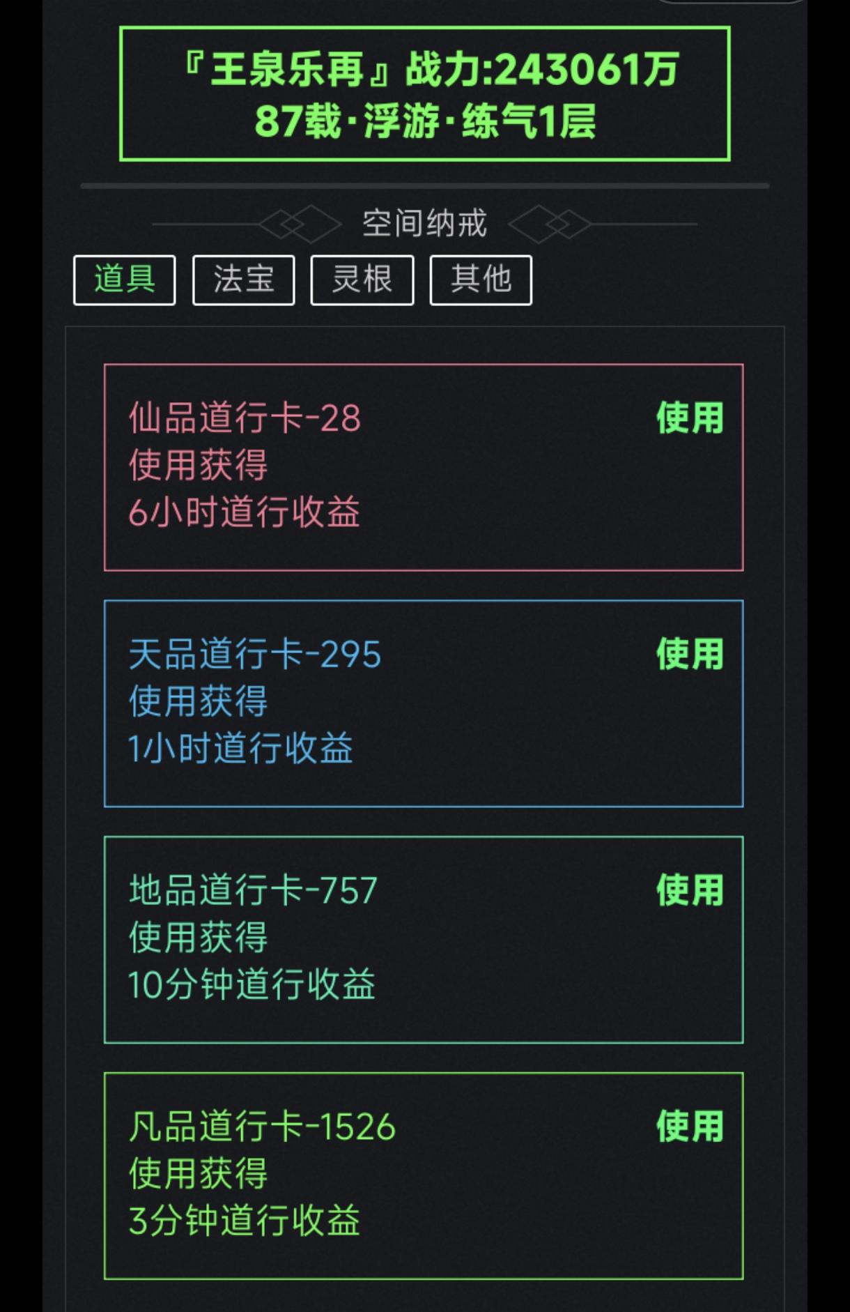 尽量不要在一个大境界内使用太多的道行卡,而导致后面的大境界没有道行卡用