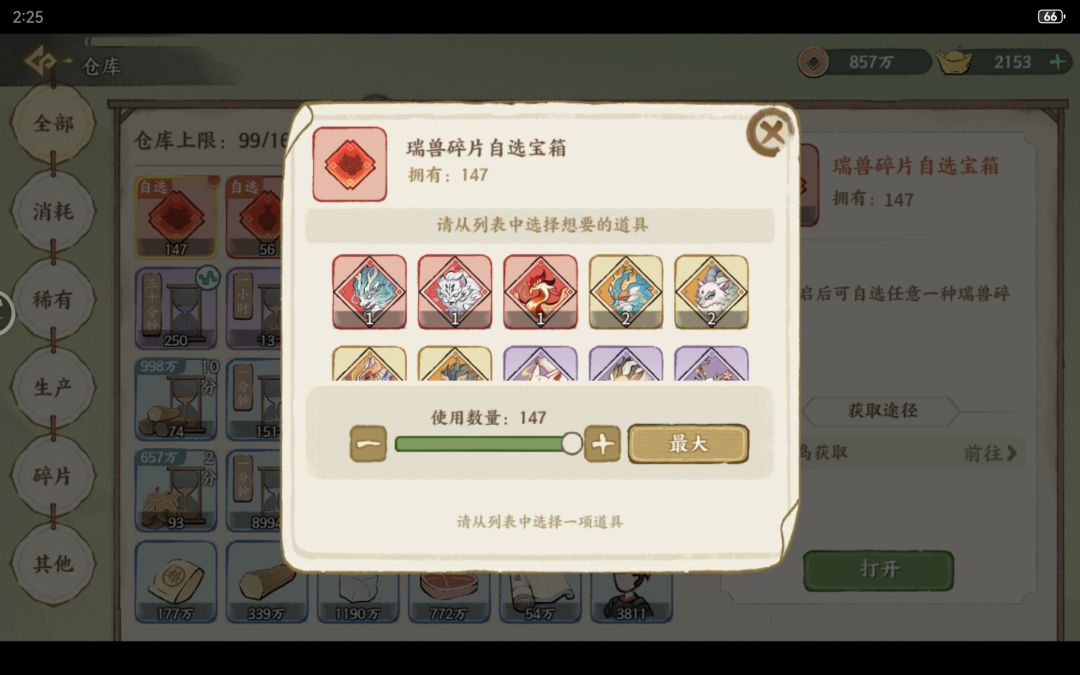 6.多余碎片出售时可以像瑞兽兑换一样,默认全部出售,加一个“最大”按钮🥺,以及多余门客碎片不能出售的话有什么用途吗🤔