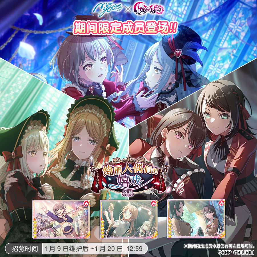 ※本招募中新登场期间限定成员的卡面将包含Ave Mujica成员的形象,但Ave Mujica成员并不会在小故事和回忆小故事中登场。