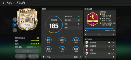 实战中这张齐达内是145至尊传奇版本的全面加强,更强大的盘带控球能力使之更适合作为中场组织者来发挥实力。