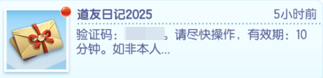 道友日记需在游戏接收验证码绑定角色ID,点击“获取验证码”后,请记得前往游戏内:【更多】→【邮件】→【道友日记2025】查收你的专属验证码哦!