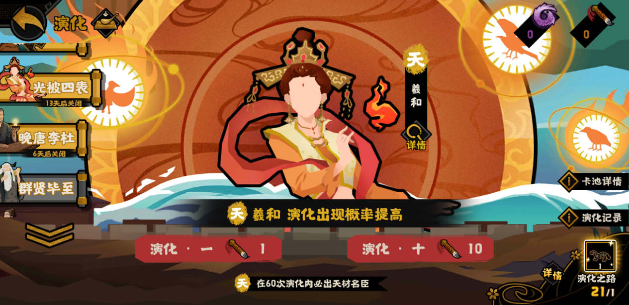 1月16日至1月29日,中国古代神话中的太阳女神——“日母”羲和演化概率限时上升!