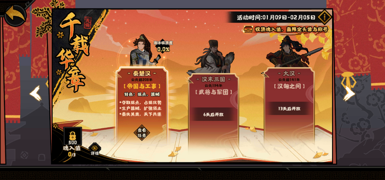 1月9日,全新剧本挑战活动千载华章正式开启!活动期间完成系列任务,积累魂入值,即可领取多重好礼!