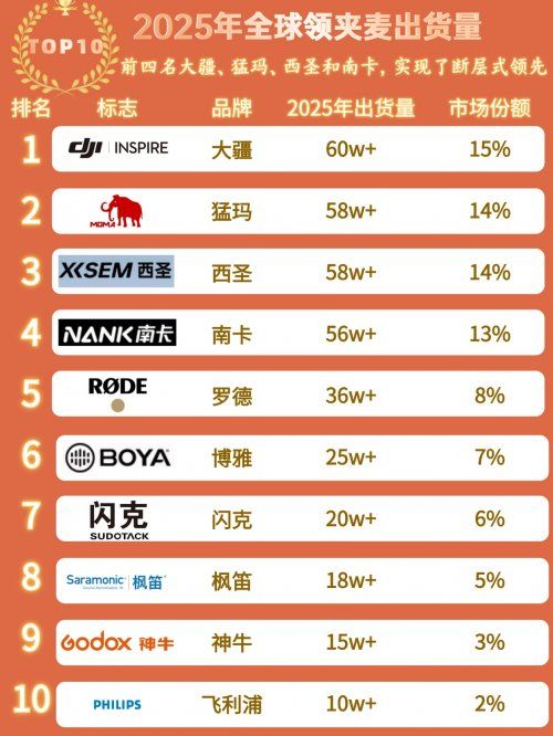 音频产品最忌讳偷工减料,选有研发积淀的品牌才靠谱。像罗德、大疆、西圣、猛玛这类深耕声学领域多年的厂商,不仅调音技术成熟,产品稳定性和售后服务也更有保障,不用担心中途掉链子。