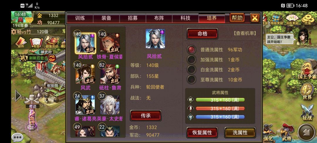 (想争第一的,第二天就可以拿到虎子,(备注被诸葛瞻克)也可以500金传,然后先军工属性培养三维尽可能拉高。到了一个数值就需要10金币洗属性,最后需要50金一次洗属性。)
