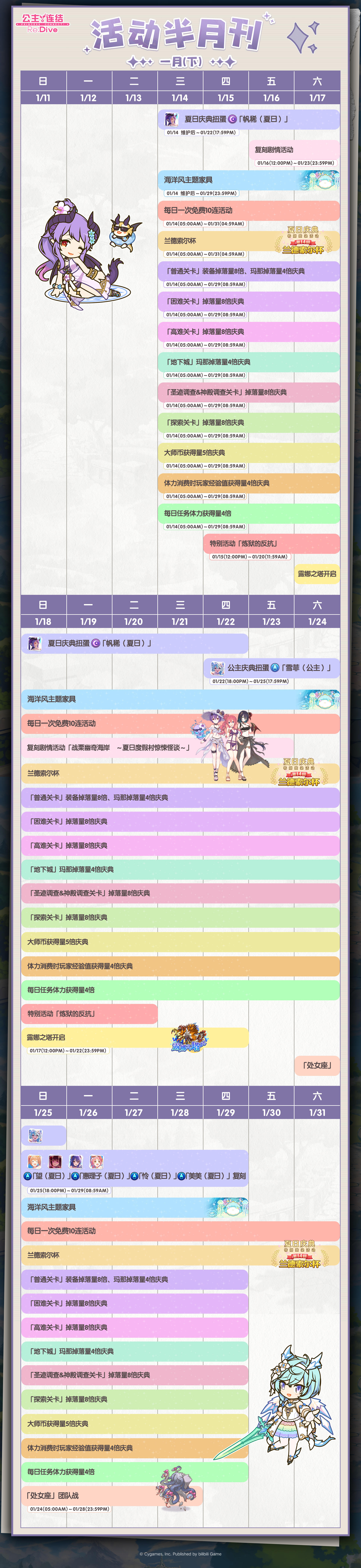 活动半月刊(一月下)已公布,请骑士君留意一月下旬常规活动的开展时间哦~
