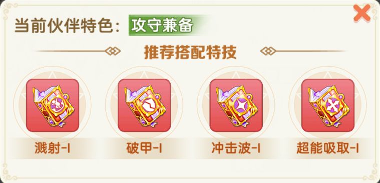 喵丽丝的推荐技能是以下四个:溅射、破甲、冲击波、超能吸取。我们喵丽丝可是一位攻守兼备的全能型伙伴呢,喵~非常适合新手前期用来推图和冒险,即使到中后期能力也毫不逊色哦!