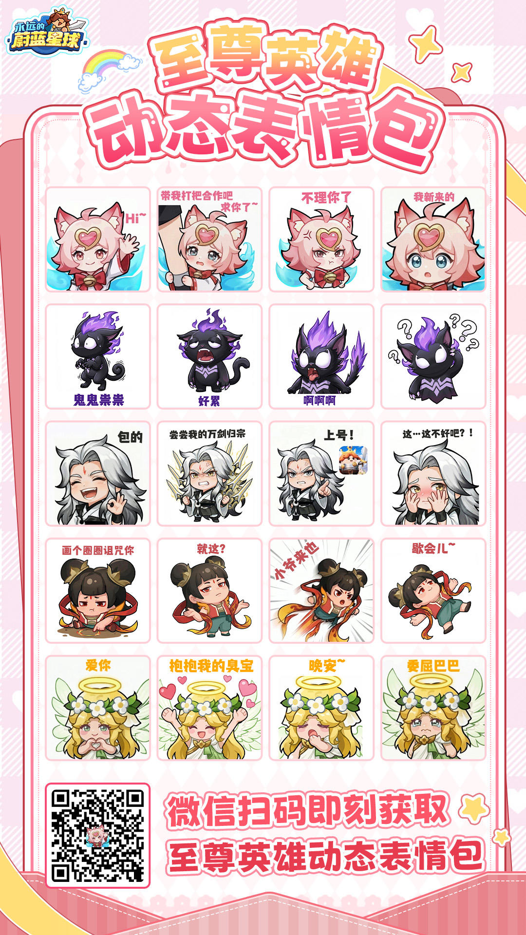 微信扫描下方二维码或前往【微信表情商店】搜索“至尊英雄动态表情”即可获取。