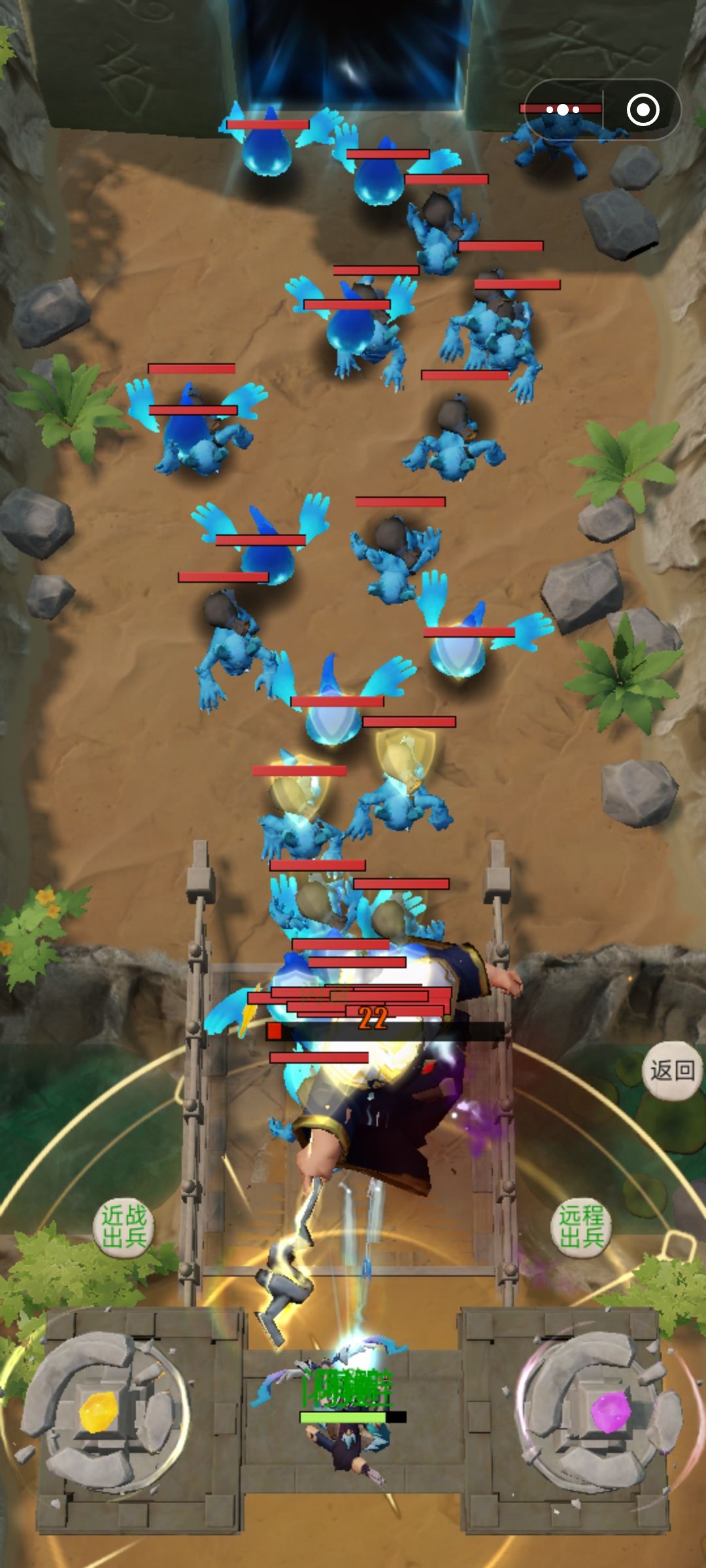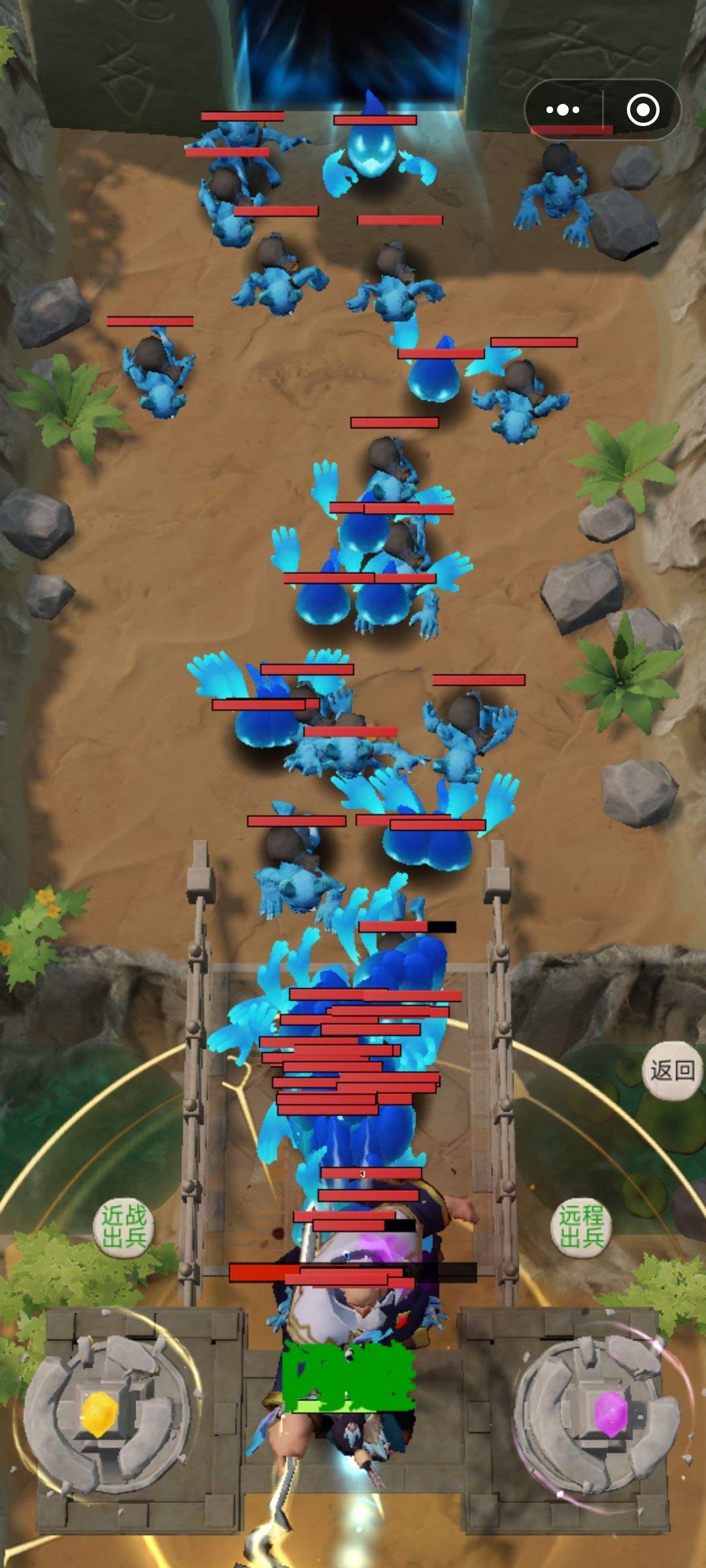 安排剩下两组60的采集炼金,这个时候第一关第一次打基本上是打完了,不会通关但Boss的血量不会重置,我们仅需重建城墙,利用刚刚第一组炼金完毕的金币再次征战,我们一共需要打四次即可通关。