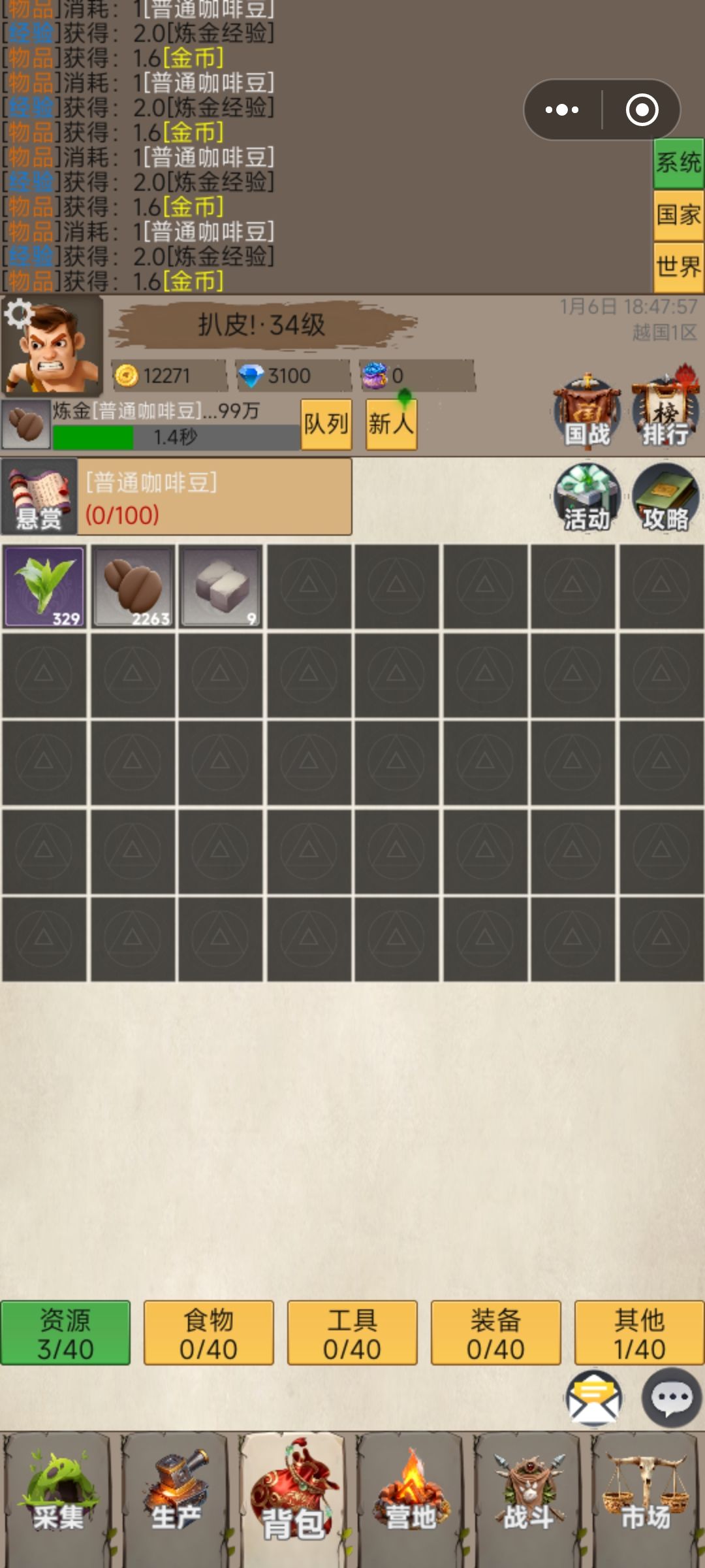 通关之后我们就解锁了市场,这个时候就可以低价扫货了,按照当前市场普通咖啡豆购买只需0.8,炼金后可获得1.6金币,一个小时后便可3000金左右,三个小时约有1.2万金币。