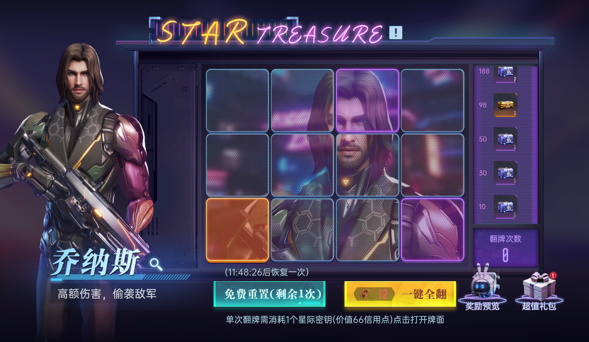 S6的星际宝藏依然需要星际密钥进行抽取,一个星际密钥价值66信用点,一轮翻牌需要12个星际密钥,实际花费的信用点与之前一致。