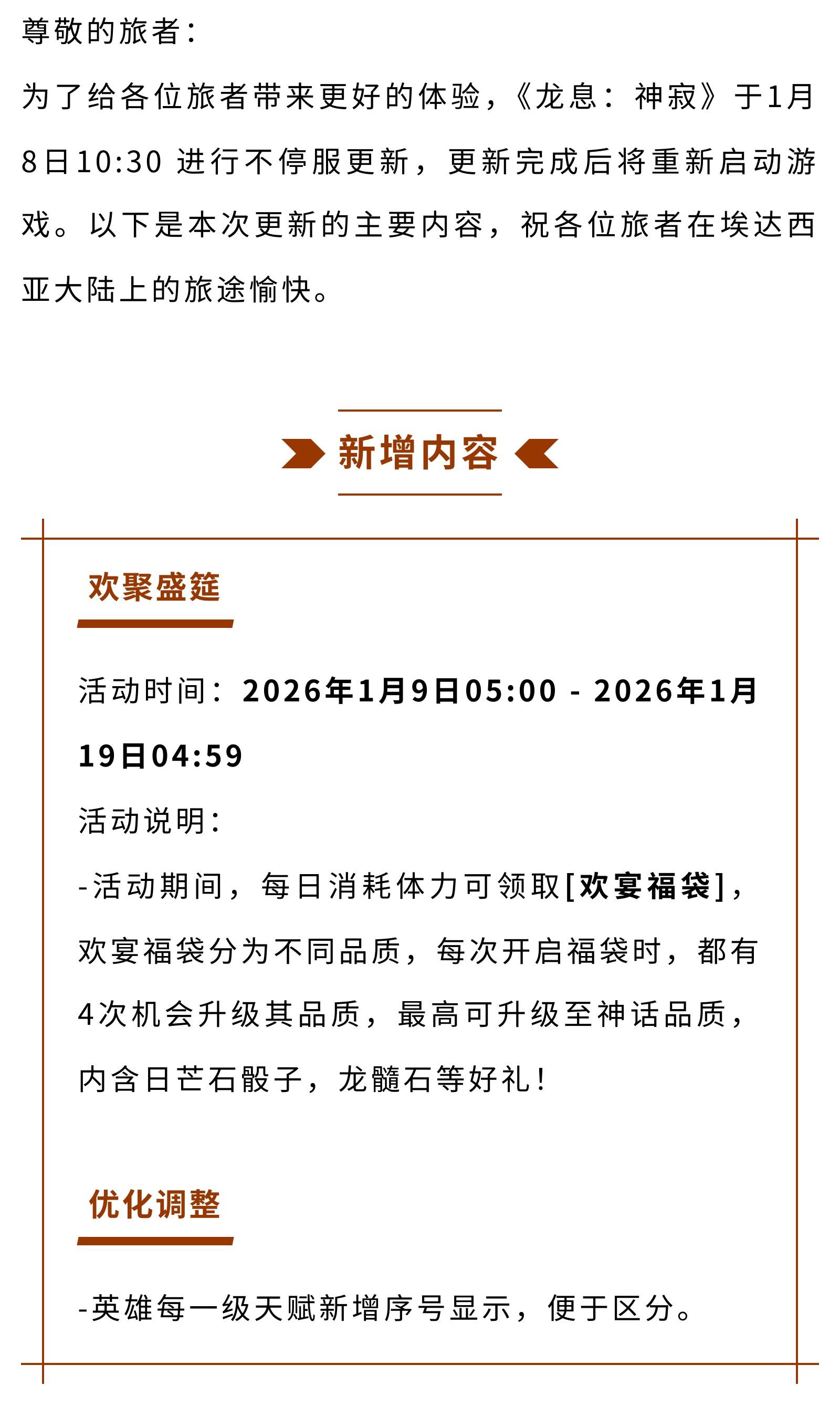 《龙息:神寂》1月8日更新公告