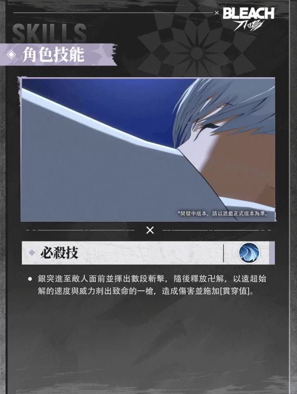 游戏中的市丸银是突系强攻角色,拥有多种连击方式与位移技能控制节奏,积攒灵压可蓄力释放威力强大的战技。点击下方视频,一起查看市丸银的技能详情吧!