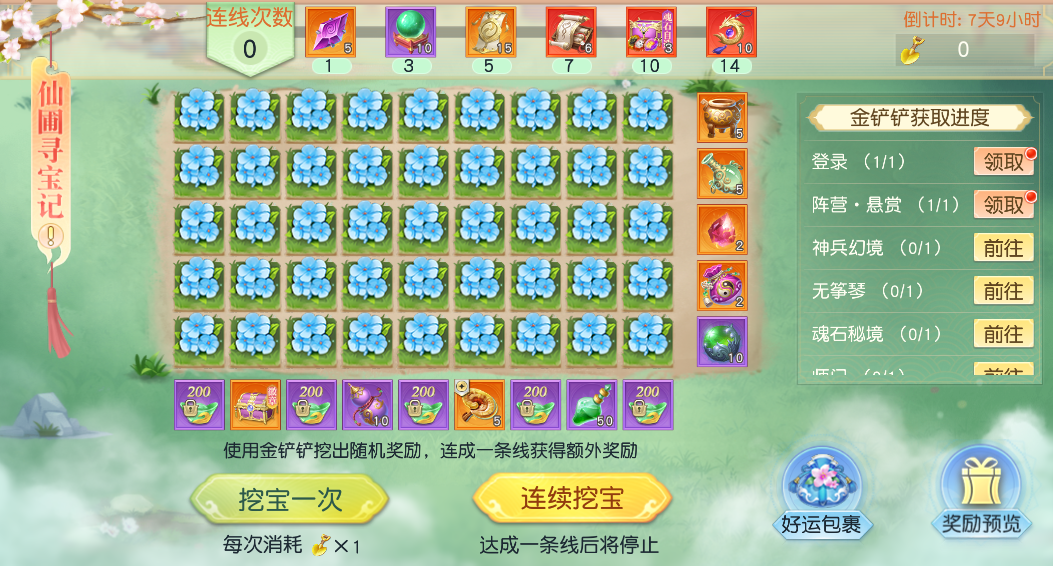 3、挖出的宝地达成横向/竖向连线时,可额外领取对应的横向/竖向奖励。
