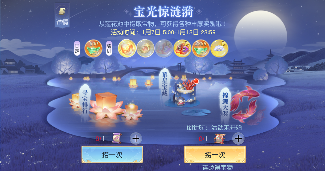 4.锦鲤大奖和寻宝排行将在1月13日的21:00重置,请各位天命者留意时间哦