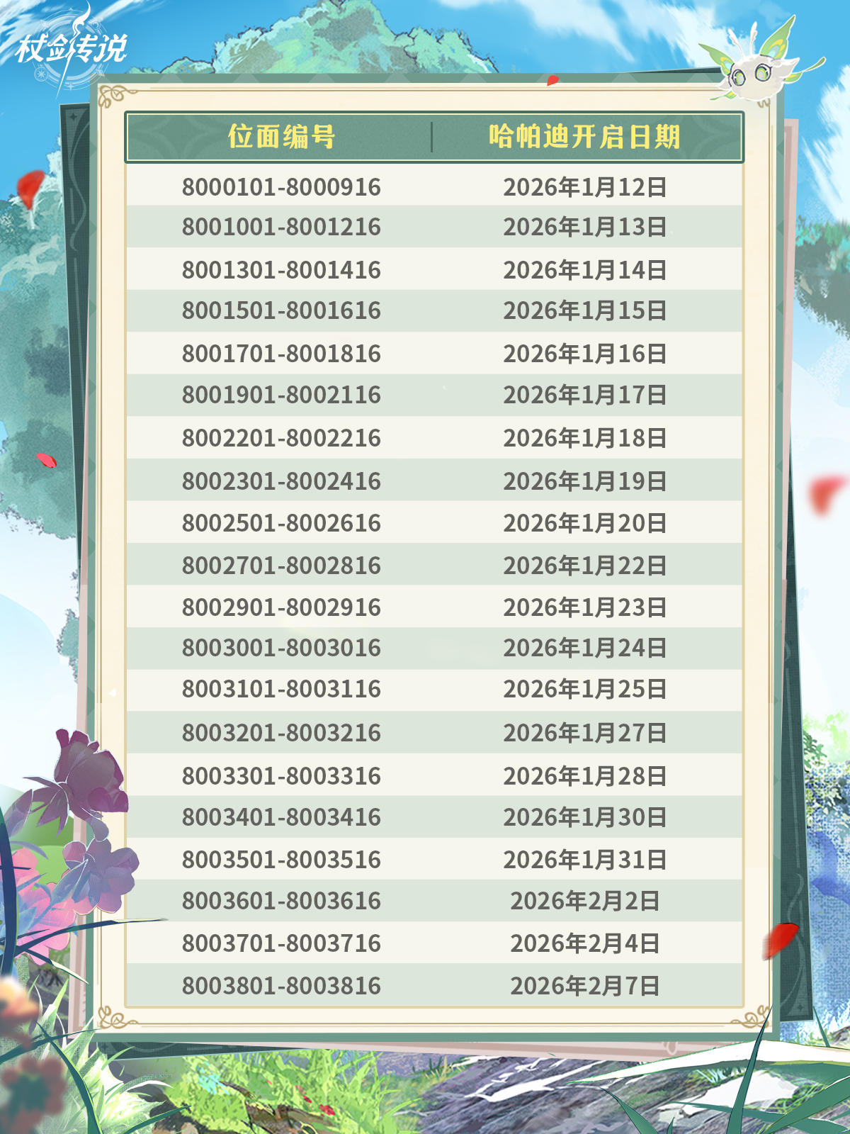 请注意,不同界域「哈帕迪」的解锁时间可能存在部分差异,冒险者可参考下图部分位面开启时间,确认自己所在位面「哈帕迪」何时启动!或参考游戏内「哈帕迪」赛季预告哦~