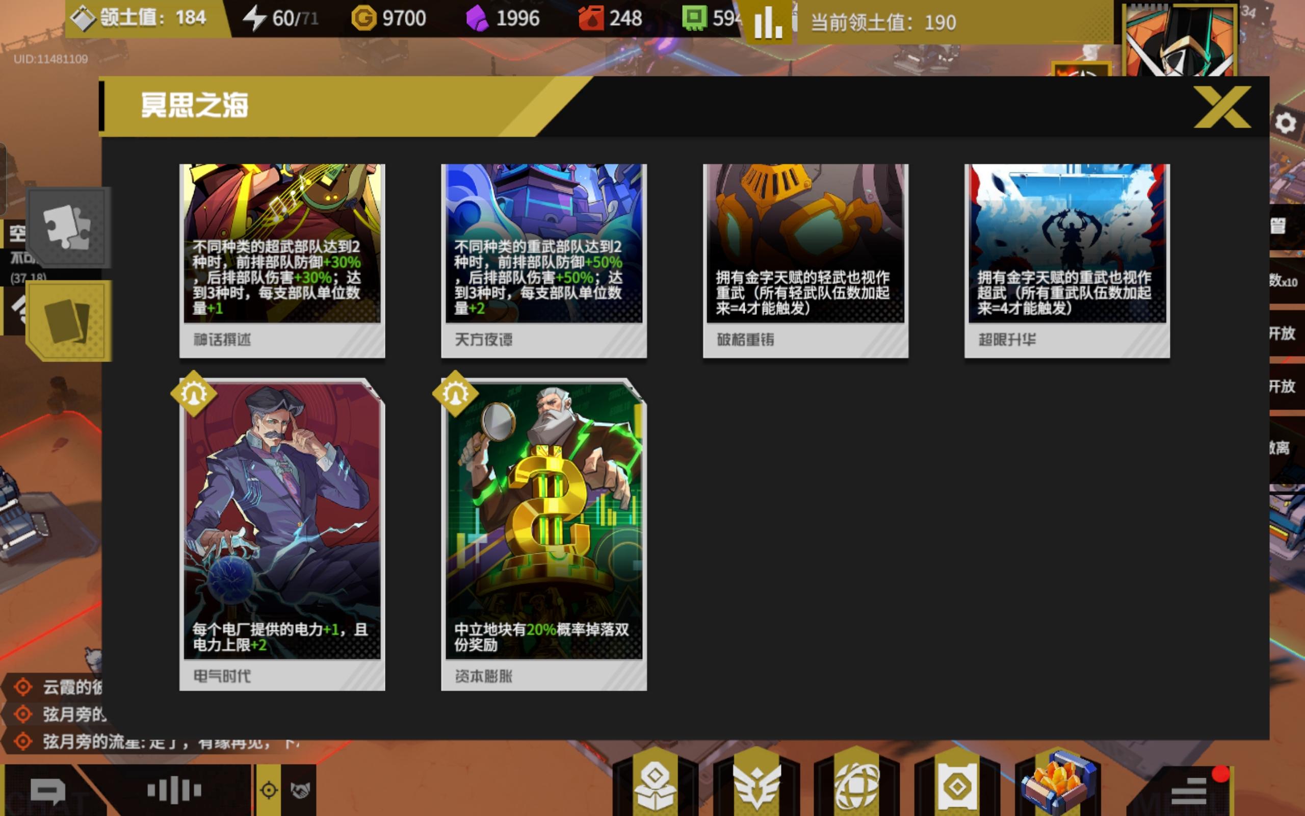 随王后又出来一个战争载具,拿到了克隆,工业阵线,暴雨还是没有。国王自选拿的荣光之路,荣光虽然减攻击,但30的攻击换来每队队重武加3单位和每队超武加一单位还是香的