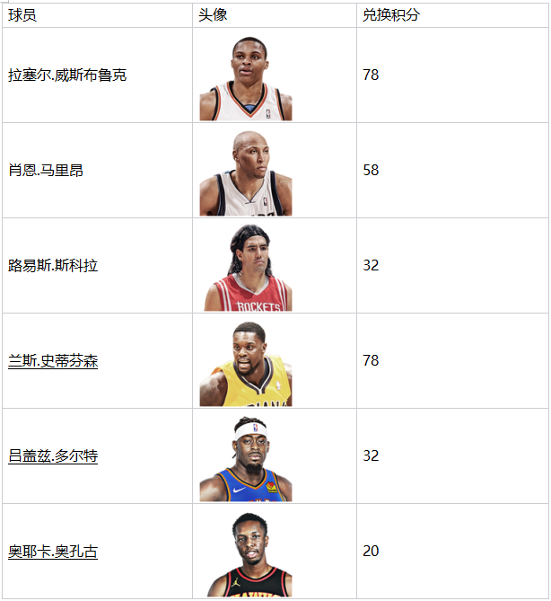 首批可兑换球员: