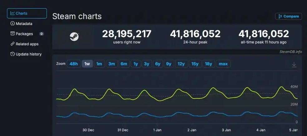 值得一提的是,两大事件之外,Steam平台也传来重磅数据:1月4日晚10点,Steam同时在线人数突破4181万,创历史新高,其中中国月活用户超5500万,占全球半数以上,成为此次数据突破的核心推动力。从IP动画进展到安全事件,再到平台用户增长,48小时内的游戏圈动态既展现了行业热度,也暴露了潜在风险,持续牵动全球玩家神经。
