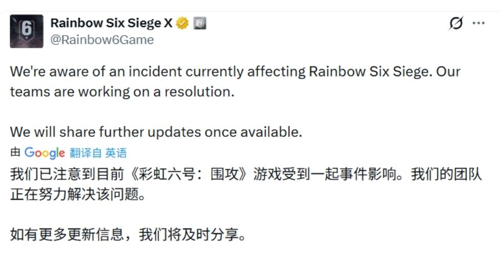 《彩虹六号:围攻》则突发大规模黑客入侵