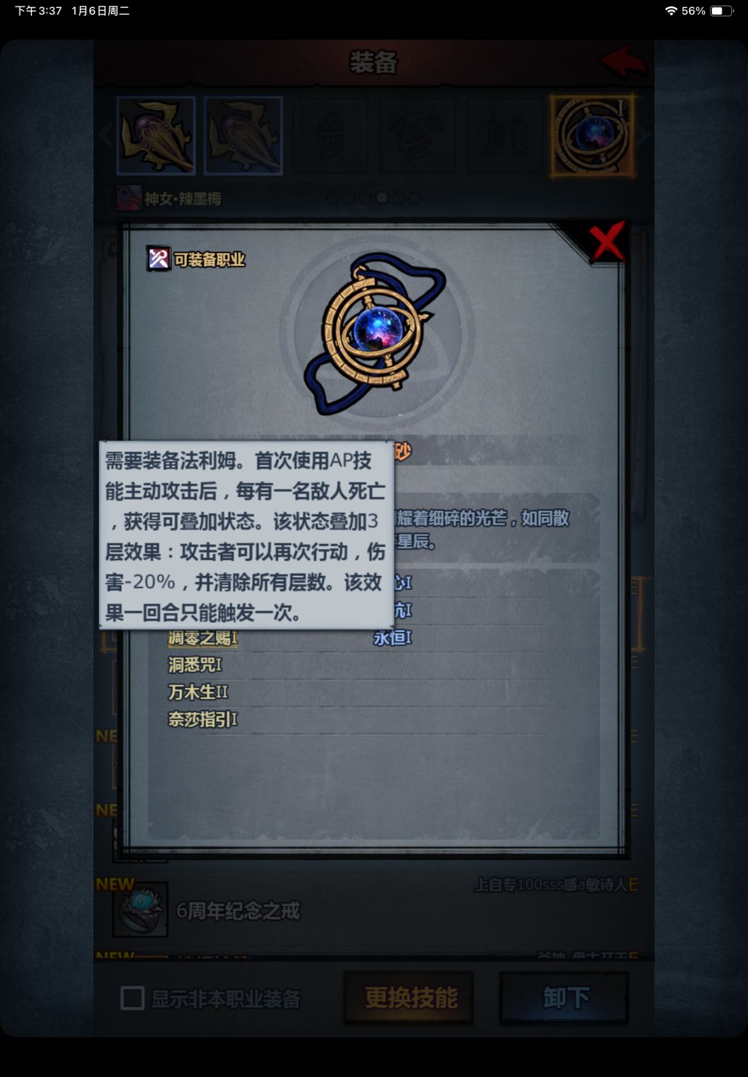 第三个是3级圣物,成本比较高,攻击力和伤害加成都有,圣物最好是精灵的,法拉和切瓦也可以第四个是60级传家宝2级甲,主要是提供续航,弓改吮能1级也够用,水晶多皮甲可以拉到60,没多少就拉到20级
