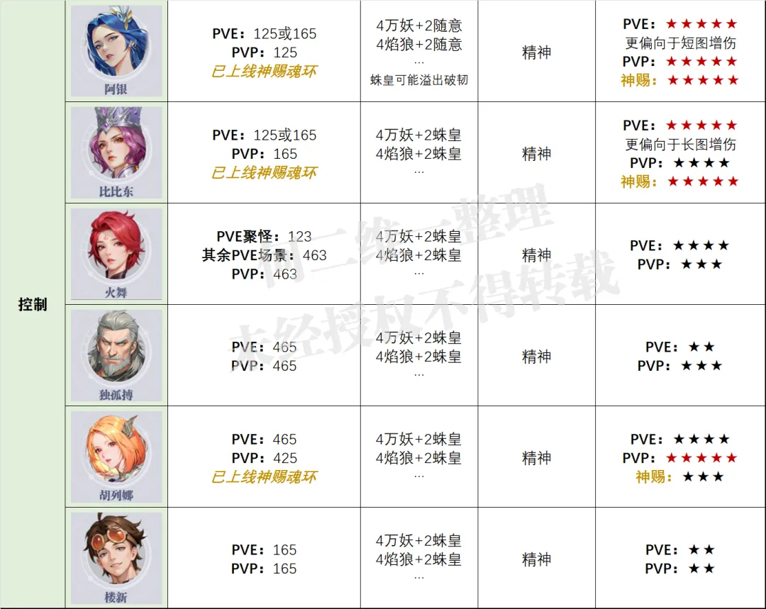 第三部分控制系角色则此次并无太大变化,不过控制比比东随着神赐魂环的上线则在此于长图战斗中表现出了不俗的实力,作为开服普池角色的她能具备如此之久的强势期,也颇为不易了。