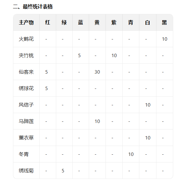 数据处理:同一 “主产物 - 颜色” 对应的子产物,累加所有图片中的兑换数量;无兑换记录的单元格填 “-”。