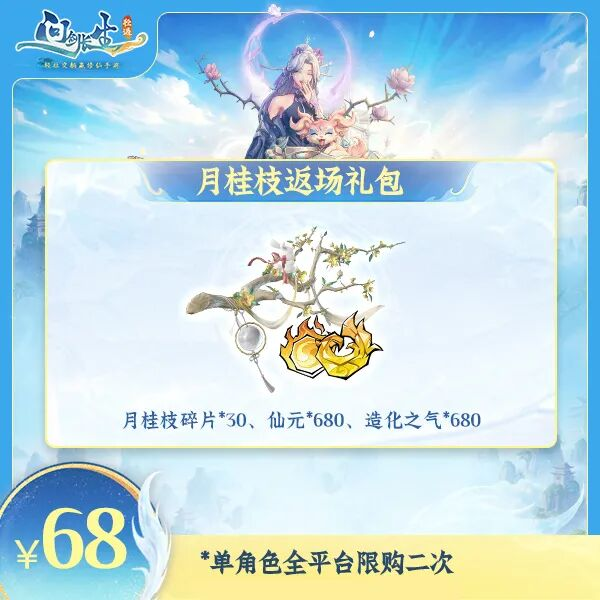 前往抖音搜索【问剑长生】,主页点击商品橱窗,还有2款68元返场飞行法器礼包【月桂枝】和【玄渊墨雪】可选购。