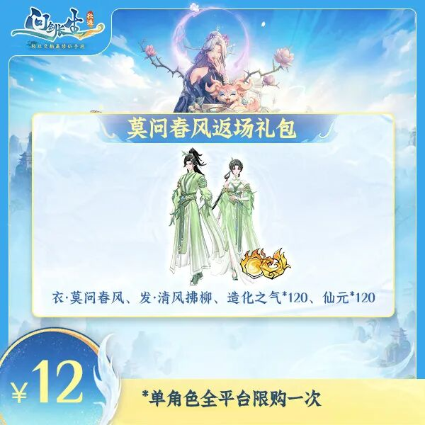 获取方式:抖音搜索“问剑长生”,点击主页【商品橱窗】,搜索“返场礼包”,购买对应时装礼包,礼包活动时间截至1月8日。
