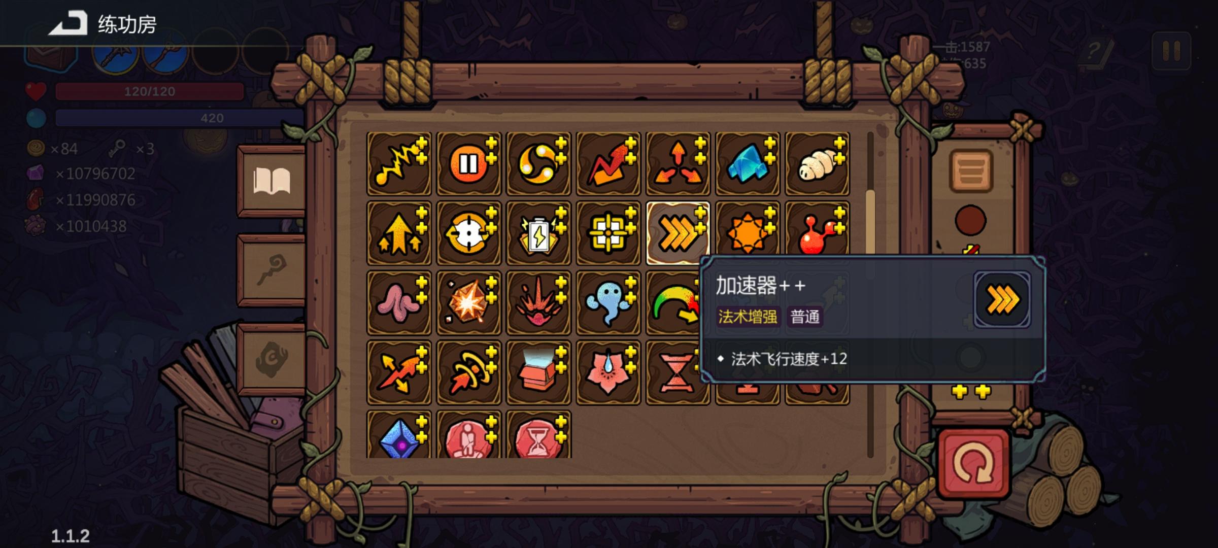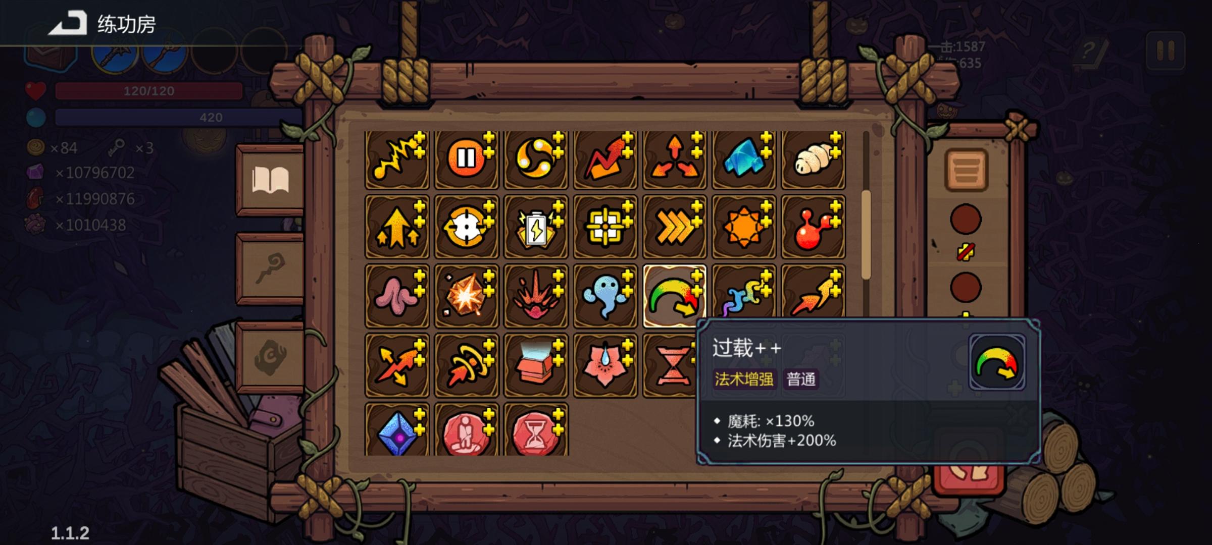 首先说它最容易成型是因为这套构筑的核心伤害法术都是普通级的,获取难度极低,只需要在进图禁用法术的时候留下下面六个法术就行,看图宝子们